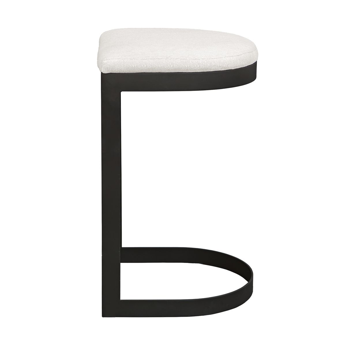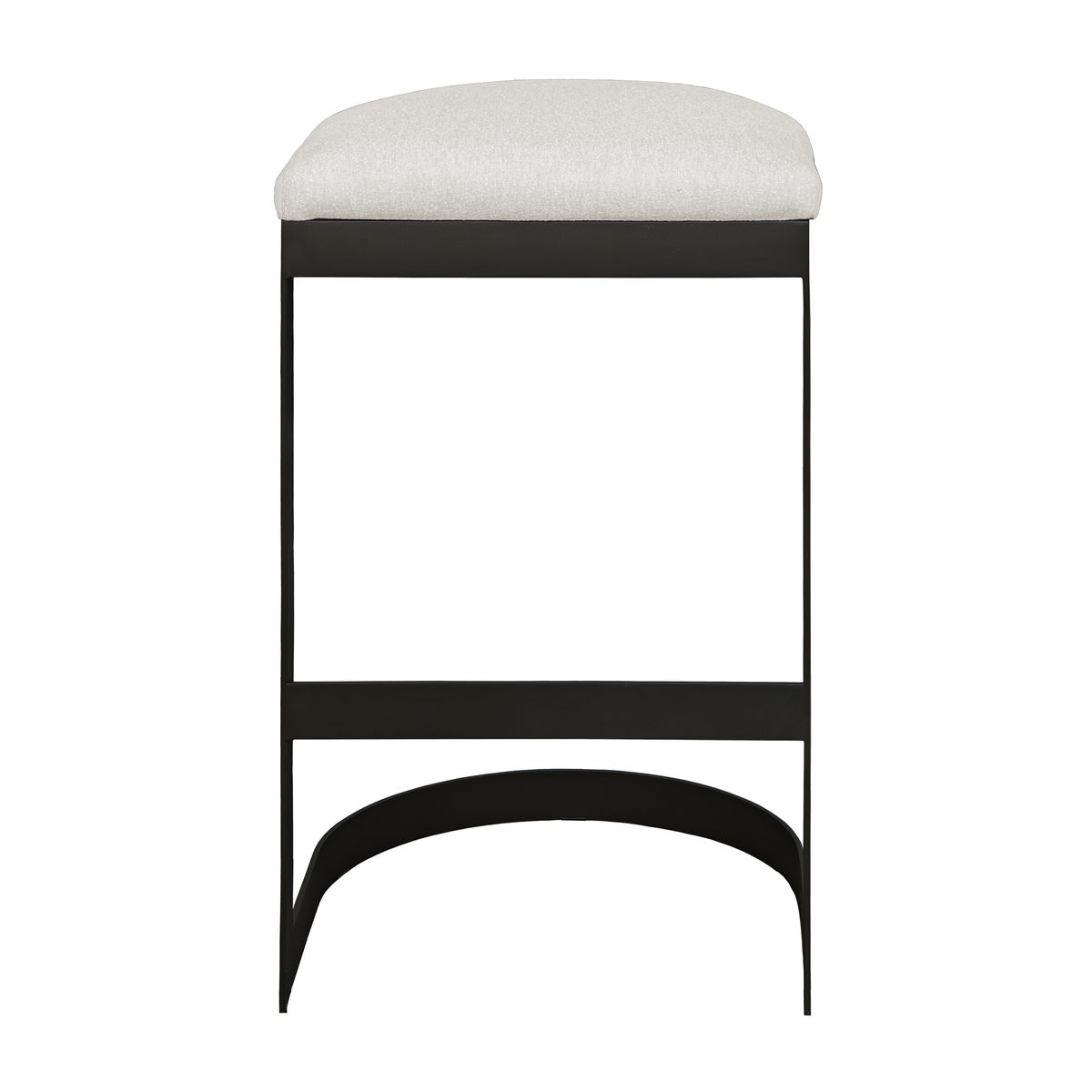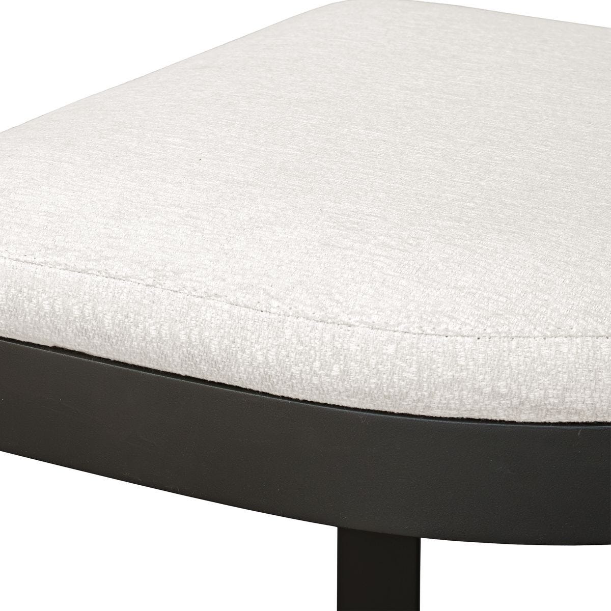 The Maude Outdoor Bar Stool combines industrial style with comfort, featuring a durable, powder-coated steel frame in Java Black paired with a plush cushion in heavily textured Taupe Gray outdoor fabric.