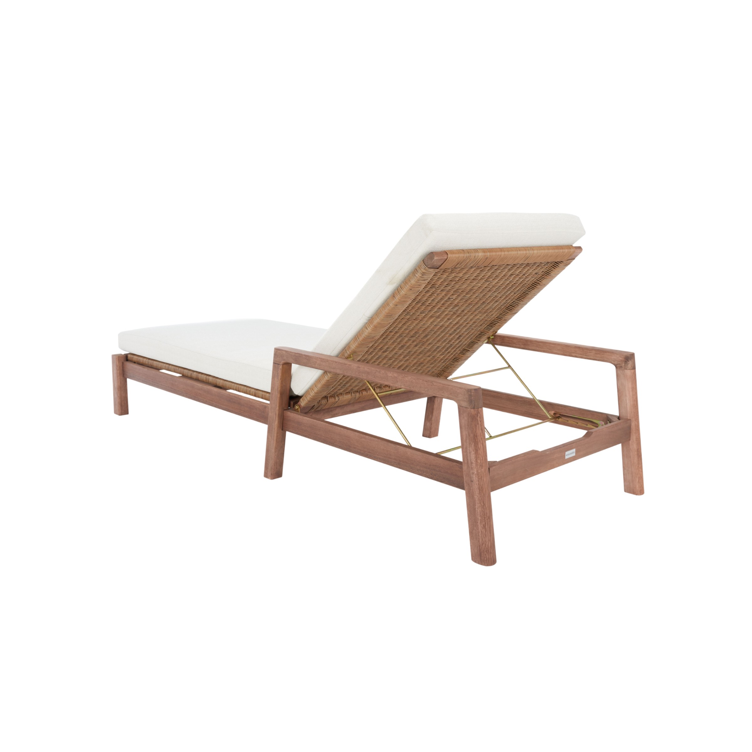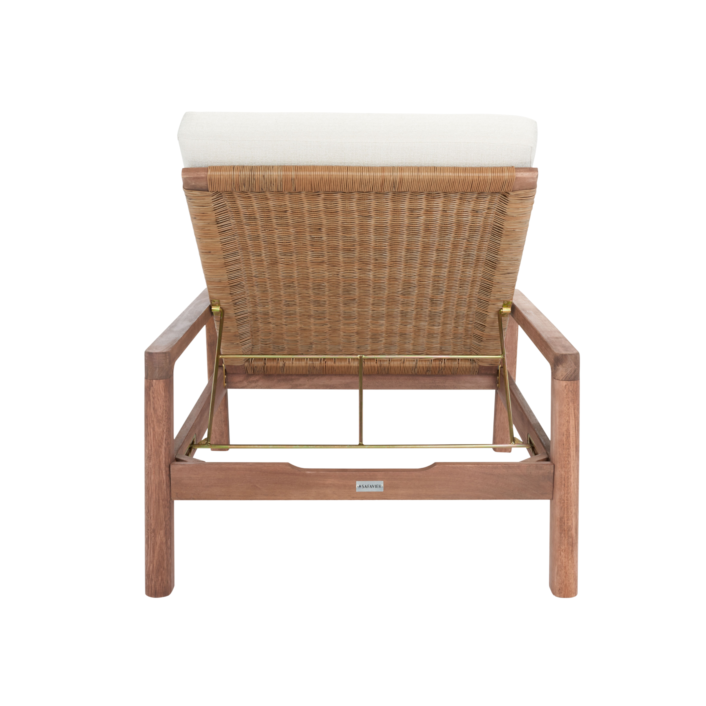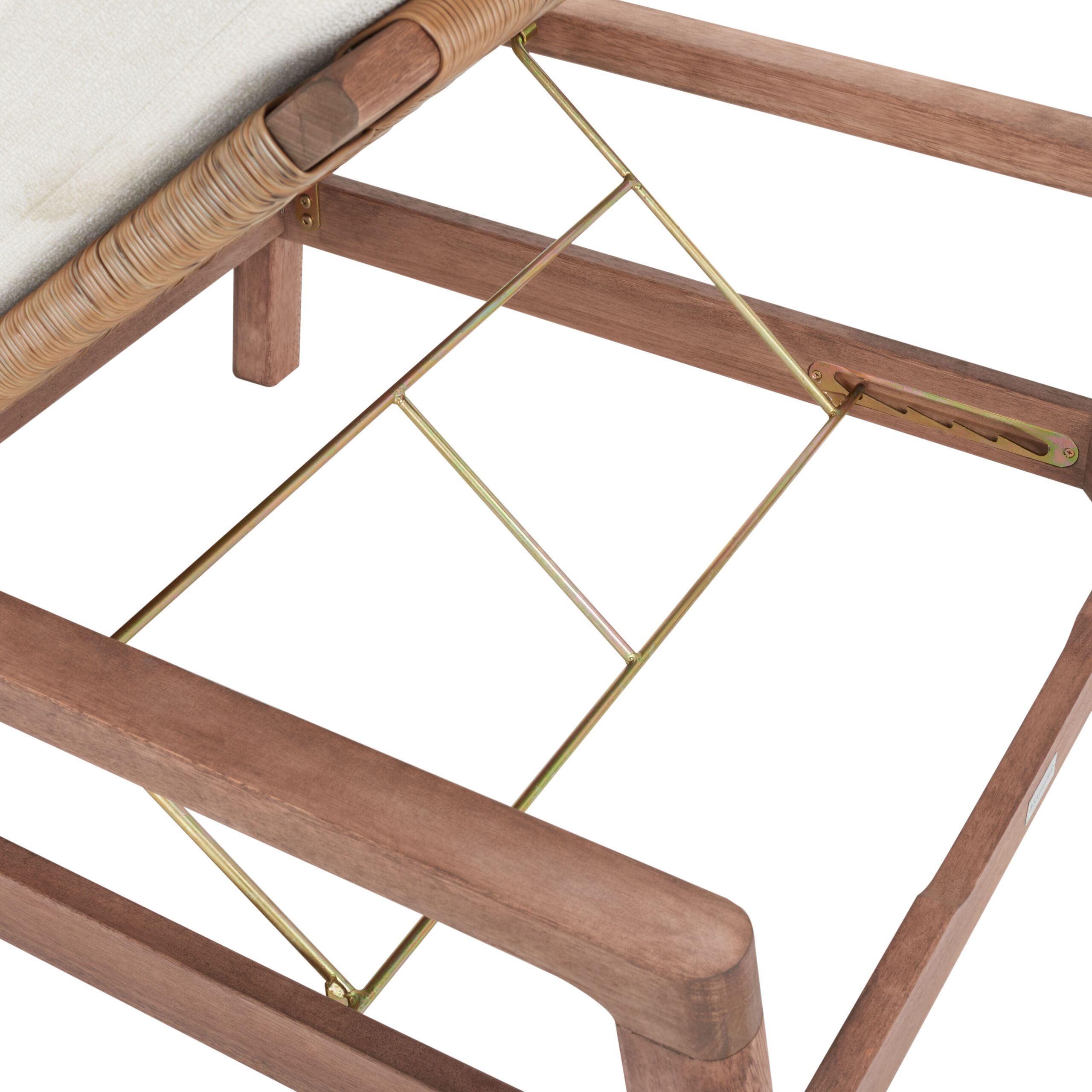 A must-have for the stylish staycation, this White Donnamaria Sun Lounger epitomizes outdoor comfort. Plush white linen cushions offer lavish relaxation in the sun, while a clean-lined natural eucalyptus frame enhances the aesthetics.
