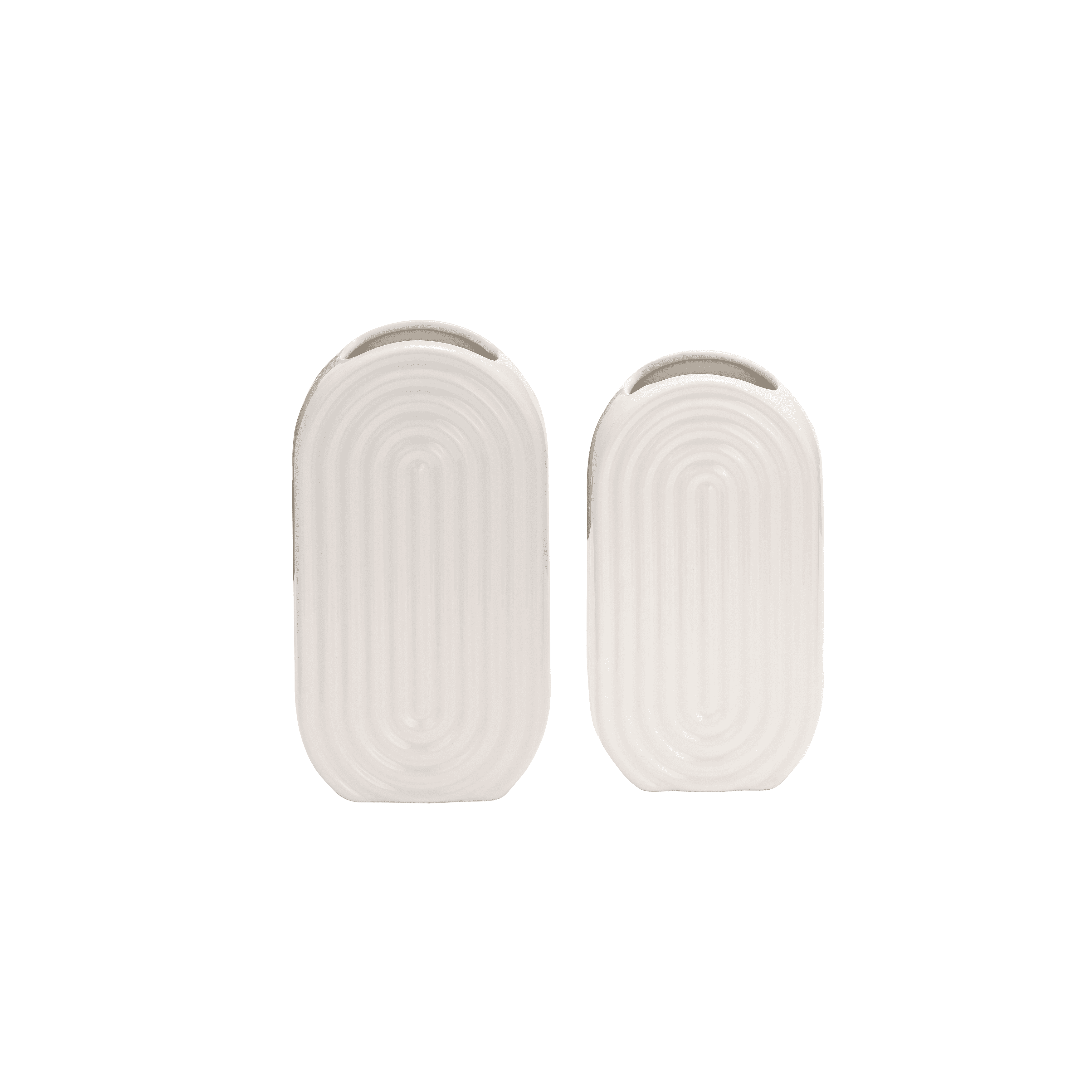Enhance your decor with the versatile ceramic White Oval Ridged Vase. This chic piece, featuring a classic white finish and distinctive ridged design, serves as a perfect canvas for your favorite flowers or greenery. By incorporating this vase into your space, you can add a stylish touch to any table, shelf, or countertop. Crafted from high-quality ceramic, it promises durability and longevity, making it an excellent addition to your home or office. Additionally, this vase makes for a thoughtful gift for any occasion, allowing you to share a touch of elegance with others.
